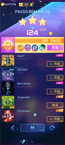 每首歌曲结束后都能得到金币奖励,玩家可以持续刷新歌曲列表,挑战更高分数,突破自身极限。