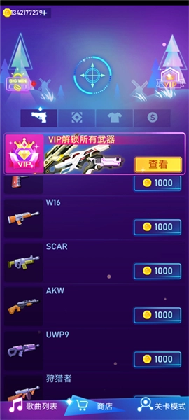 在商店里,玩家可以用金币购买各种枪械,解锁更强大的武器和特效,从而增强射击时的爽快感。