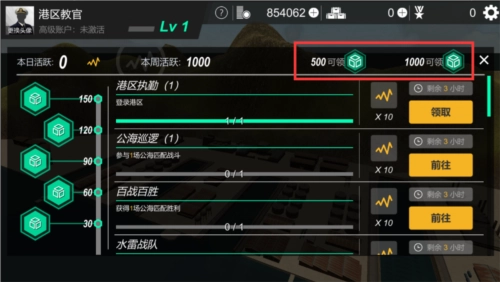 完成任务后您会获得活跃度,每周累计达到1000活跃度时,就能领取战略物资奖励,奖励数量和您的勋章数量相关,记得提升勋章数量哦。