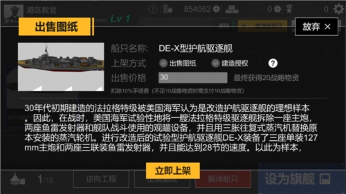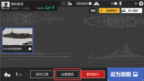 若您想要出售图纸,需先完成该战舰的建造。待建造完毕后,您可在船坞里选择将船只上架