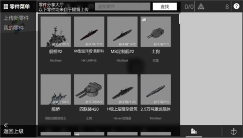 自定义零件是由其他提督上传的零件组合体,包含各类舰体、武器结构、上层建筑等。您可以根据自己的喜好,自由选择喜欢的部分进行组装。