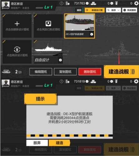 对于刚开始接触的玩家,我们还建议另一种开局方式,也就是购买其他提督的图纸,或者取得建造授权。