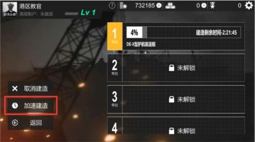 选择对应的渠位,点击加速并确认,就能立刻完成战舰的建造。加速使用结束后,战舰便建造完成,此时点击“接受战舰”,就可以迎接属于您的战舰了。