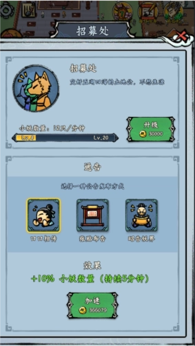 最后!大家会发现,当小妖进入道场的数量达不到道场的位置要求时,就该去土地公公的招募处升级一下,增加小妖数量;或者选择发布通告,在短时间内获取大量小妖哦!