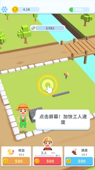 3、点击屏幕,加快工人的速度,完成搬砖的考验。