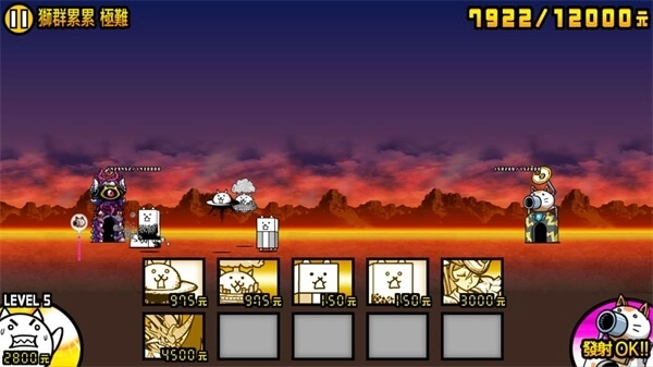 大概升到五级就差不多了,你可以学我这样操作:打掉第一只狂牛后先不派任何猫,等狂牛靠近我方塔的时候再疯狂派猫。这样做一方面是为了攒钱,另一方面能省去从派猫到前线的支援时间,增强火力,集中量产输出型猫咪。