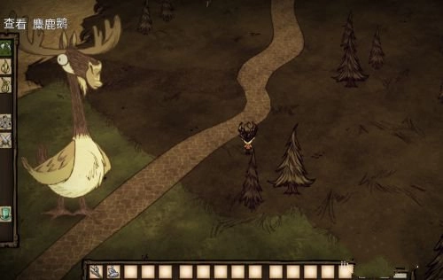1、前期收集一组草、树枝、木头后,就可以沿着大路去探路了,路上遇到燧石和石头可以顺手捡起来,看到浆果或者萝卜之类的也要记得采集。