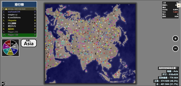 2、玩家能够消耗该数值来占领新土地,或是进攻其他玩家。当有一名玩家占据超过95%的土地时,游戏便宣告结束。