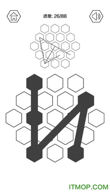 之前玩过选手端口的迷走点线,得输入选手号码才能进入对战界面,对手只有两个,在相同时间内比谁速度更快,特别考验思维敏捷度。当时玩着有点遗憾,因为关卡少还卡。这款就不一样了,近90个关卡能让你玩个尽兴。其实内容挺简单的,每个关卡都有不同图形结构,玩家要找到节点,移动组合它们来完成指定图形,变化特别多。一般来说,过10个关卡没问题,后面的可能得多花点时间。