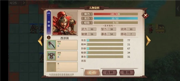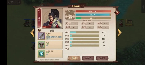 人物的属性包含武力、智力、统御、敏捷与运气这几项,玩家只要食用对应的果子,就能提升武将相应的能力。