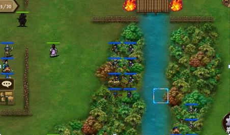 只要进入左侧区域,就会触发伏兵。伏兵出现后,栅栏里的敌军便不会再复活了。