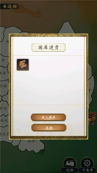 5、在“版图”板块能够领取国库进贡,要是想获取特定版图,就可以通过征战的方式来实现。