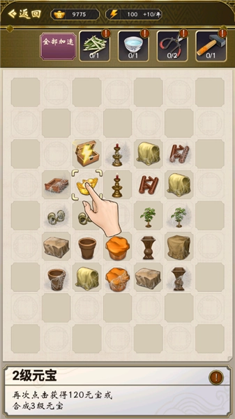 7、在“国库”系统里,可通过合成操作获得金元宝,并进行商品售卖。