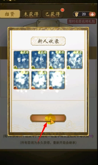 2、进入之后你就可以看到自己招募的各种臣将了