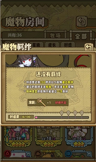 玩家挑选自己已培养出好感度的魔物,点击开启羁绊按钮即可激活与该魔物的一级羁绊关系。成功建立羁绊后,玩家能解锁和魔物相关的更多进阶任务与剧情内容。此外,魔物还会获得额外的属性加成,并且随着好感度逐步提高,玩家可以持续解锁新的剧情篇章与新的属性增益,感兴趣的玩家可别错过这个玩法。
