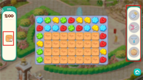 5、左边显示的是剩余可行动步数以及关卡通关条件,右边则是可供使用的道具。
