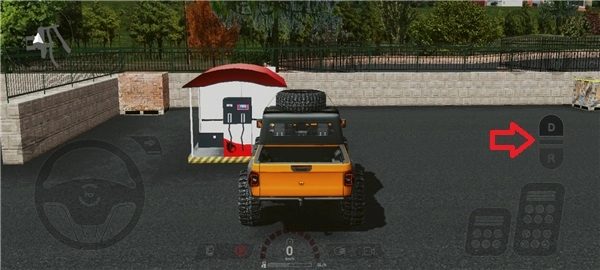 5、点击右上角的钥匙图标启动车辆,通过点击左侧区域控制方向,右侧区域则用于加速和刹车。
