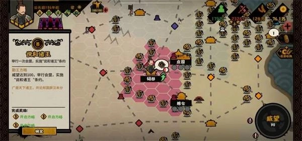 各方势力头像下方的3个点,代表的是对方的意愿度。意愿度越高,头像下的点就越多,对方不仅更容易同意参与会盟,也更愿意接受条约内容。