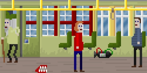 游戏采用横版操作模式,每一关里我们都能自由移动,去寻找可以进行恶搞的对象或事件,一旦恶搞成功,场面会十分滑稽有趣。