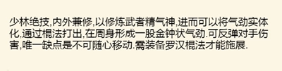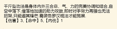 触发条件:基本拳脚200级、基本轻功200级、基本内功300级