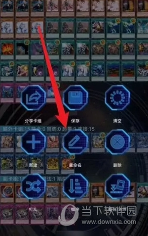 2、进入到卡组界面后,打开菜单,然后点击重命名。
