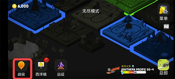 1、在火车调度员主界面点击【战役】选项,就能解锁通勤证模式。