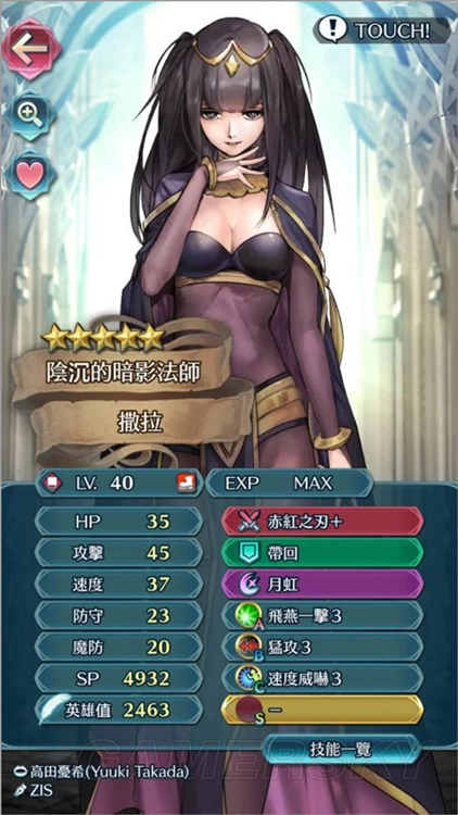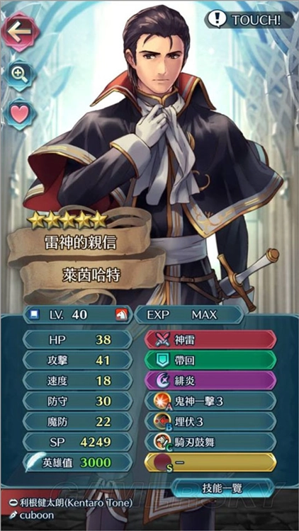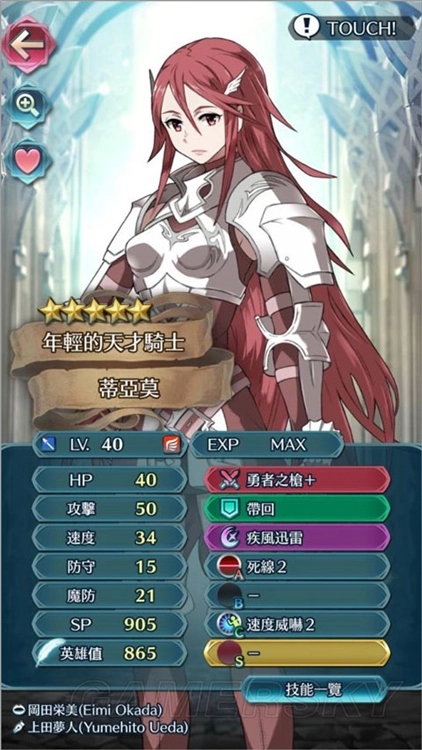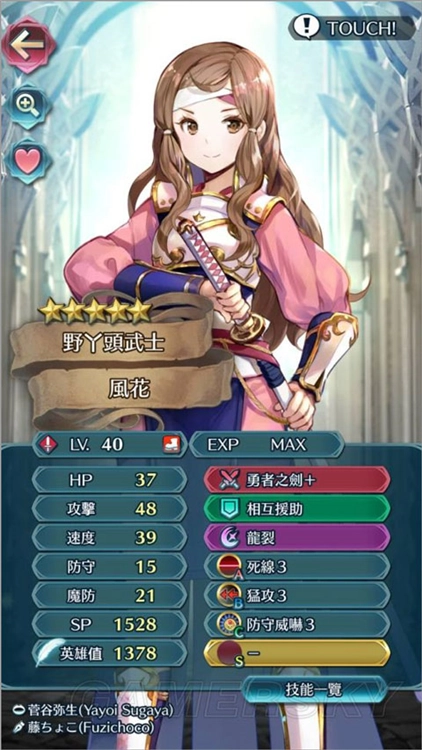 本身能力就已经很出色了,还自带勇者枪,由于飞刃能增加6点攻击和速度,所以达成连打四下的条件变得更低了。我虽然是用改死线的配置,但也可以利用原有的相性激化来专门针对红色英雄。
