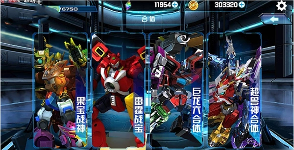 目前提供的合体机甲一共有4款,它们分别是源自《果宝特攻》世界的果宝战神、《快乐酷宝》世界的雷霆战宝、《钢铁飞龙》世界的巨龙六合体,以及《超兽武装》世界的超兽神合体。