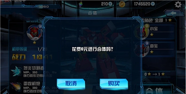 ③合体后的机甲要进行升星,需先把对应的子机甲都升级到相应的星级。