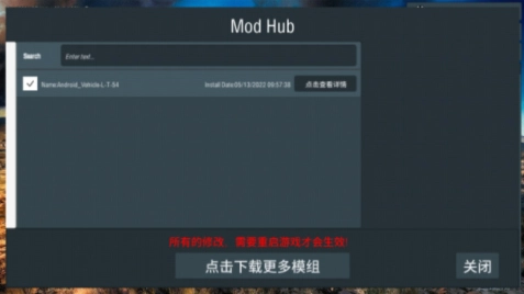 2、在处理好本地的mod模组文件后,我们需要重启一次程序,这样才能在相关界面中找到mod文件,具体可参考下图所示内容。