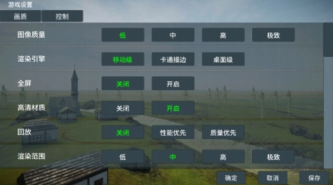 4、进入设置界面后,我们可以对图像质量、渲染引擎、材质、渲染范围、声音等属性进行个性化设置。如果玩家在运行过程中遇到卡顿问题,建议适当降低画质,以提升运行的流畅度。