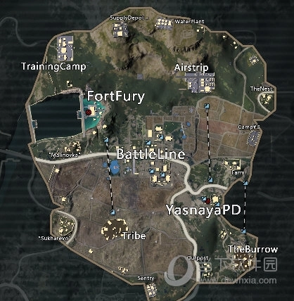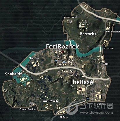 大地图的右上角分布着旧电厂和东港旧址两个建筑物密集区域。旧电厂一带车辆刷新频率较低,且地处山区,道路通行条件不佳,因此更推荐前往东港旧址附近的交叉路口及其道路两侧进行物资搜刮。