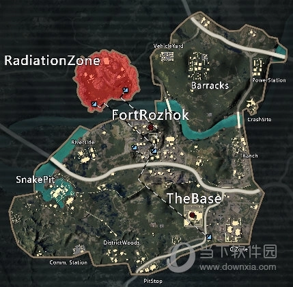 三图的战斗更为激烈,要是在三图被淘汰,身上穿戴的物资会随机掉落,不过保险柜里的物资不会掉落,所以在三图的玩家都不想被淘汰。三图设有辐射区,这里物资丰富,但进入辐射区必须在护甲上安装辐射铅块或者携带几瓶辐射药,不然就会受到伤害。另外,进入辐射区建议携带300发备弹,因为里面有不少狗子和两只猩猩,辐射区的位置就是地图上的红色区域。