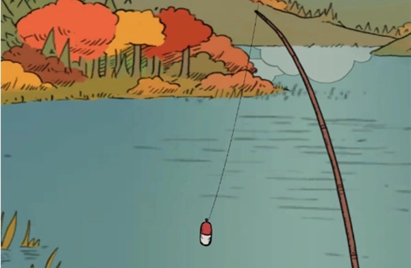 5、接着点击界面右上角的湖泊,在湖面上能看到一个带有浮标的钓鱼钩,点击这个鱼钩就能开始钓鱼了。