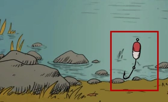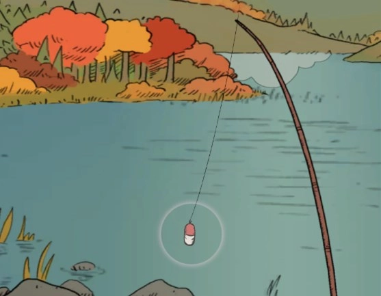 6、当浮标周围浮现光圈时,意味着有物体咬钩了,此时点击浮标便能将其钓起,收获的可能是鱼,也可能是破靴子。