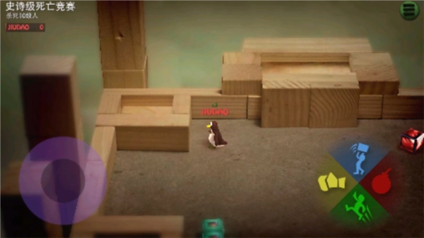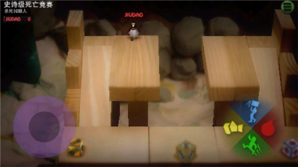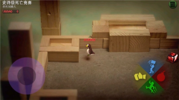 炮弹小分队有单人和多人对战两种模式,最多能支持4V4对战。游戏里的地图都很小,人物会挤在一块,稍不注意就容易掉下去,不过你也可以把其他玩家举起来扔下去。