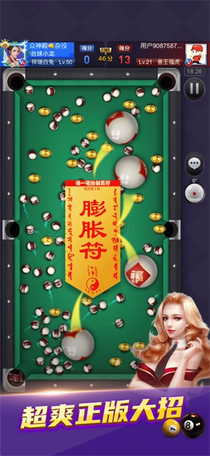 1、快速匹配对手,和高手玩家切磋较量,角逐最强台球选手的称号,荣誉加身,成就感满满;