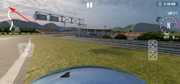 4、点击左上方小圆圈切换汽车的驾驶的各种视角。