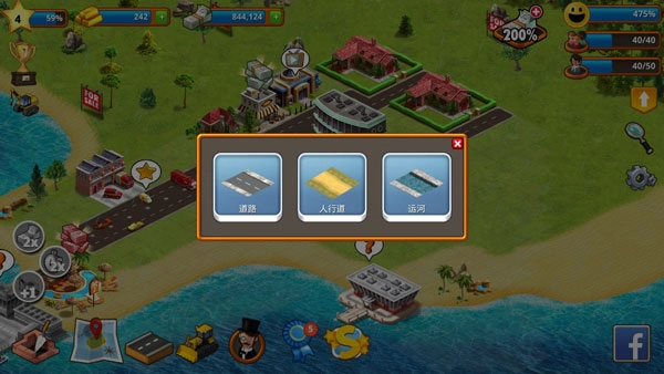 在模拟天堂城市岛屿里,所有建筑都得紧挨着道路修建;因此在铺设道路时,你得考虑规划好居民区和工商业区域。