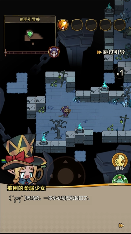 2、游戏一开始会有新手引导,你要操控角色在地下城里进行闯关。