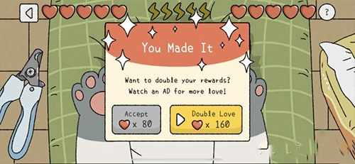 给喵喵做抚摸操作时,得根据它不同的动画状态去抚摸对应的部位,这个玩法挺简单的,玩过几次之后就觉得没什么意思了。