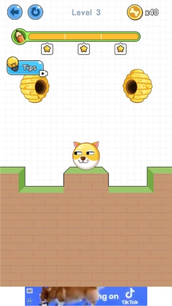 2、合理布置道具,借助划线的方式确保蜜蜂不会碰到狗狗,如此便能赢得胜利。
