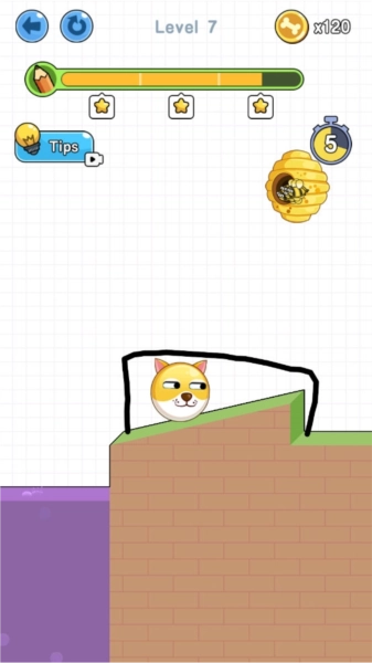 游戏采用卡通可爱的画风,画面精致,搭配独特的趣味玩法,为玩家带来无限欢乐。其中最有趣的部分就是拯救小狗:你需要用线条在蜜蜂的攻击下保护狗狗,想怎么画就怎么画,尽情发挥创意,只需滑动屏幕即可操作。玩法简单易懂,老少皆宜,绝对是闲暇时消磨时间的绝佳选择。