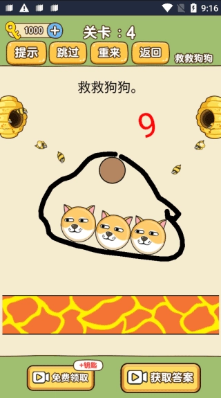 救救狗狗国际服是社交平台上的热门休闲益智游戏。糟糕!这些蜜蜂太危险了,狗狗正处于危险之中!你能保护狗狗免受这些坏蜜蜂的伤害吗?游戏的玩法十分简单:你需要通过画线来构建墙壁,以此保护狗狗不被蜂巢里的蜜蜂攻击。只要坚持到最后,你就能获得胜利。不过,伤害狗狗的可不止蜜蜂,它还得避开炸弹、熔岩、尖刺、水等各种危险,才能抵达安全区域。请一定要帮帮它!在游戏里,玩家的目标就是想尽办法救出这些可爱的小狗狗,而且操作毫无难度——你只需思考用什么方式挡住烦人的蜜蜂,这时候就得充分发挥想象力啦,只有画出最合适的保护圈,才能让狗狗避免被蜜蜂蜇到哦。