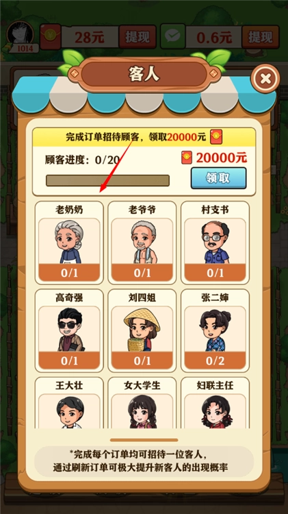 3、此时会弹出对应客人的信息弹窗,弹窗内详细展示客人的喜好作物、解锁条件、好感度等级及专属奖励等内容,好感度提升至指定等级,还可解锁特殊互动与限定道具;