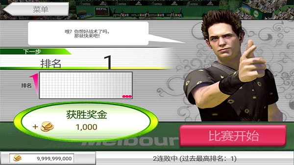 4、职业生涯的赛程安排高度还原真实网球赛事,各类大赛的举办时间会有冲突,需要挑选你有信心夺冠的赛程去参赛。