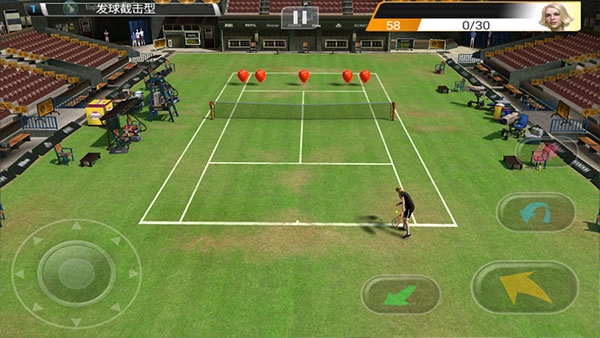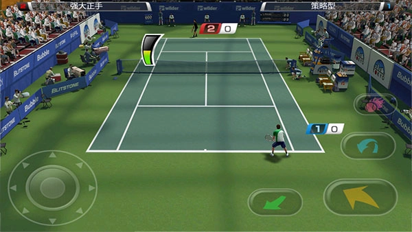 3、可玩性:包含挑战赛与表演赛两大核心模式,覆盖硬地、草地、红土三类比赛场景,配备4位风格和能力各有特色的角色,支持单人、双人以及人机对战等多种玩法。