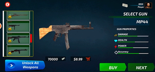 6、要是对这把枪不太满意,点击“next”就能换一把,这把看起来更厉害一些。