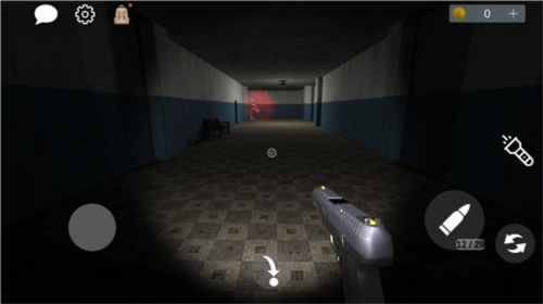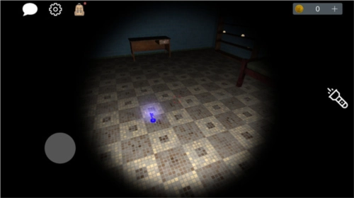 4、进入后,点击物品即可拾取。初始状态下,玩家持有可关闭的手电筒,左上角依次为聊天、设置和背包功能,背包用于收集线索道具。