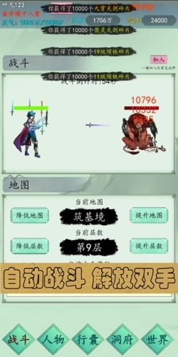 3、玩家能够在战斗挑战里尽情积累经验,快速提升等级,解锁更多精彩的修仙玩法。